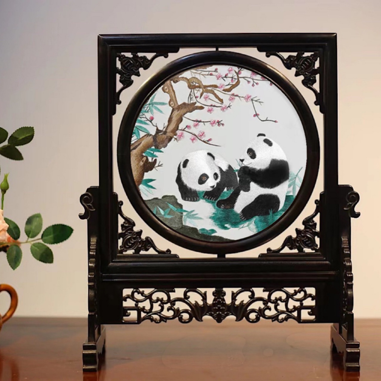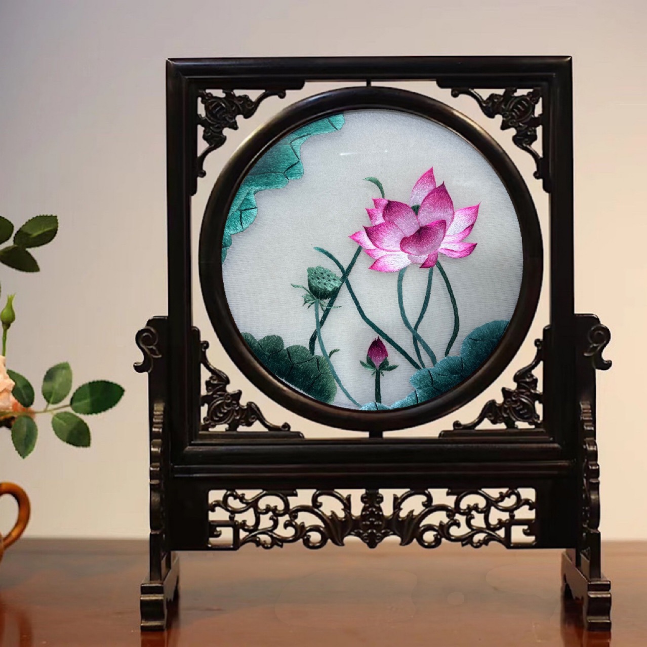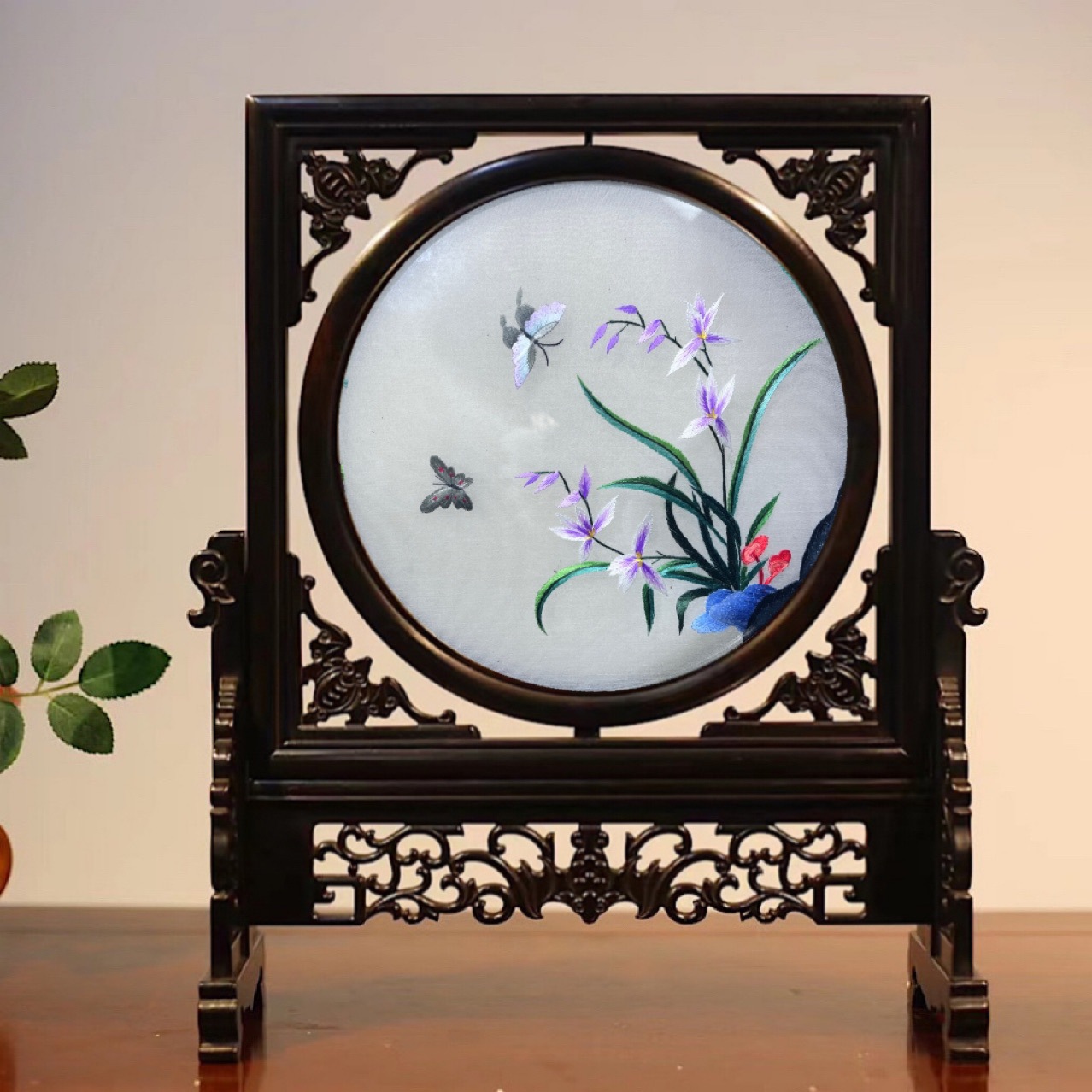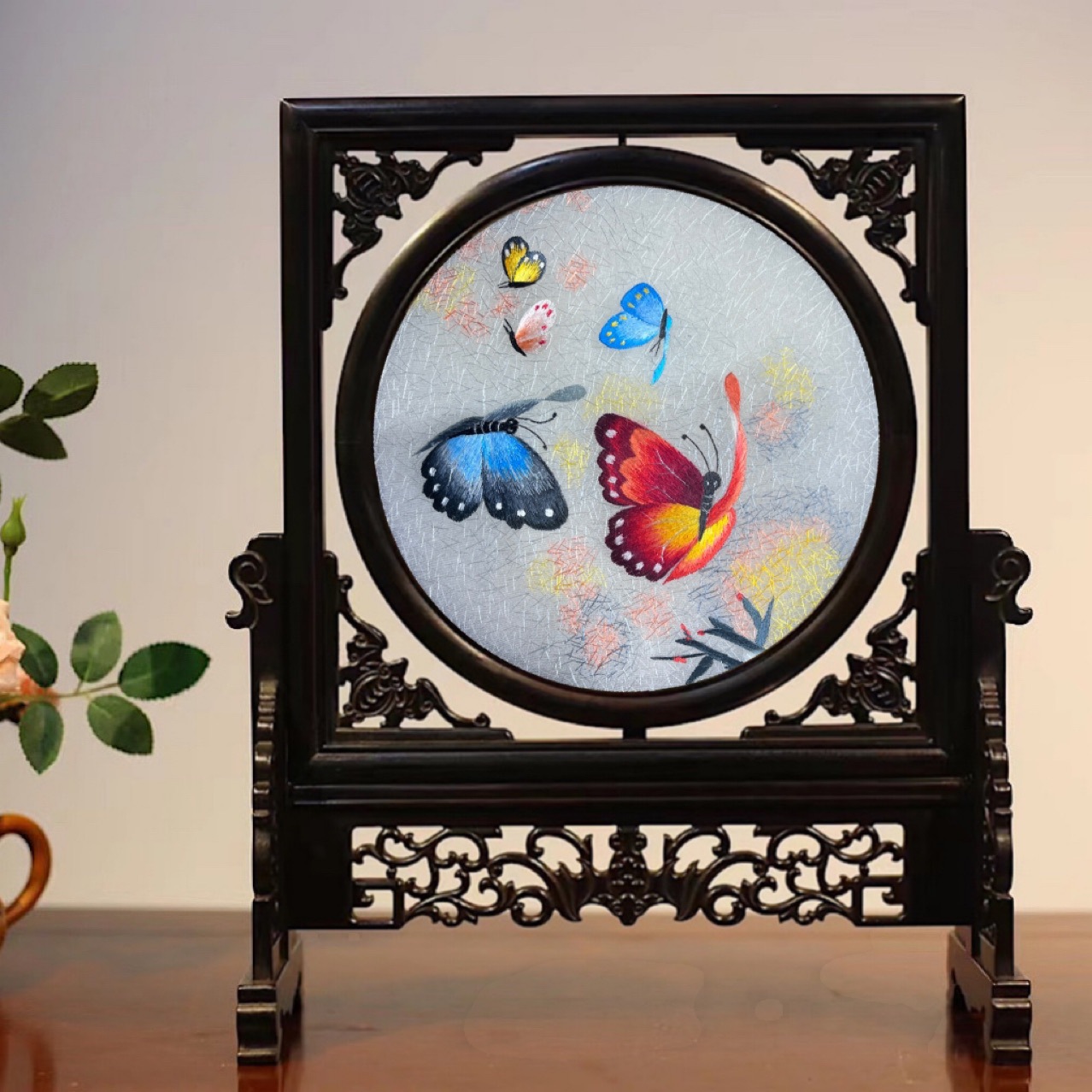 Suzhou Embroidery Hand Double-Sided Embroidery Decoration Chicken Wings Wooden Frame Gift Box Desktop Gift